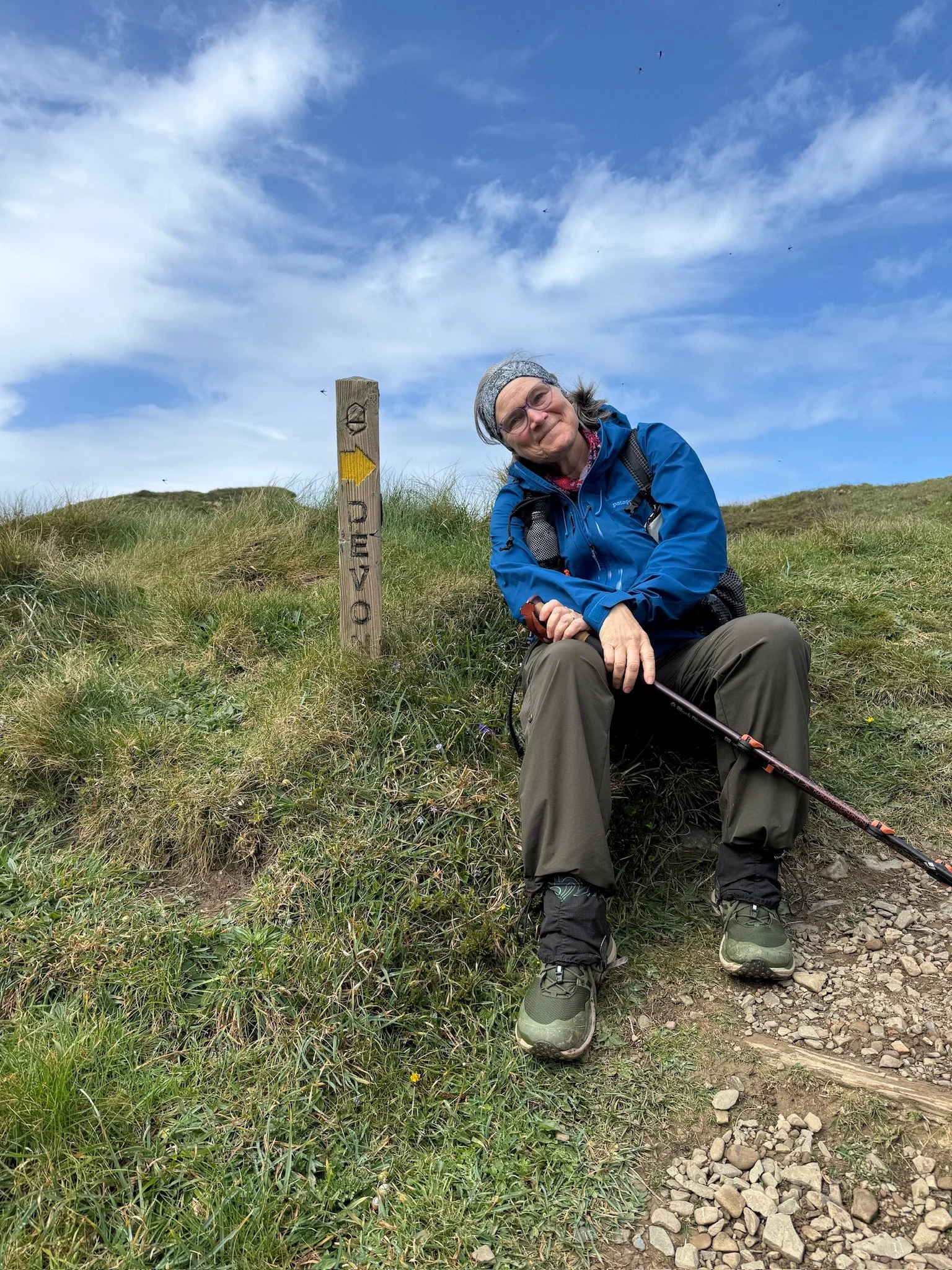 Today we started at 7:30am because the guide said it would be severe, 4,200ft of ascent & descent, and take longer than one expects. And the weather reports forecasted quite a bit of rain and strong winds. All generally true, except that we made remarkably good time and reached the hostel by 2:30pm and the sun came out by 1pm! Still quite windy though, with gusts of 30mph.
