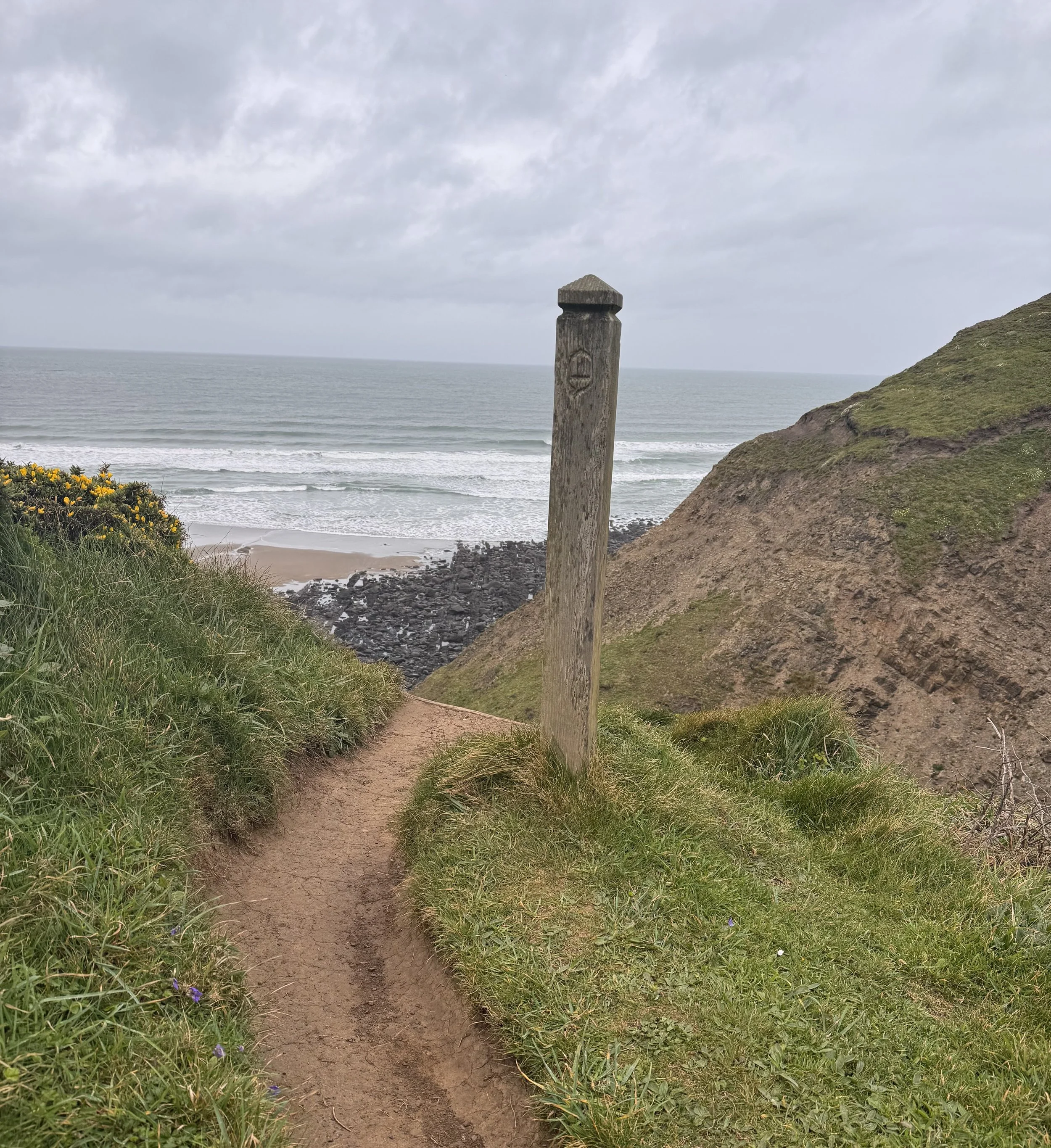 Two weeks of my journey down, and about 10 more to enjoy! I’ve walked roughly 142 miles. These have been well-earned miles, I’m assuming and hoping most days over the next weeks are a bit easier. This coastal trail is beautiful but hard going; if you ever have a chance to experience even a short morning on the Cornish or Devon coast, do it. It is stunning, and there are access points along the SWCP to get an experience of its specialness. I added to my route map to roughly show where I am, and today I left Cornwall and entered the county of Devon!