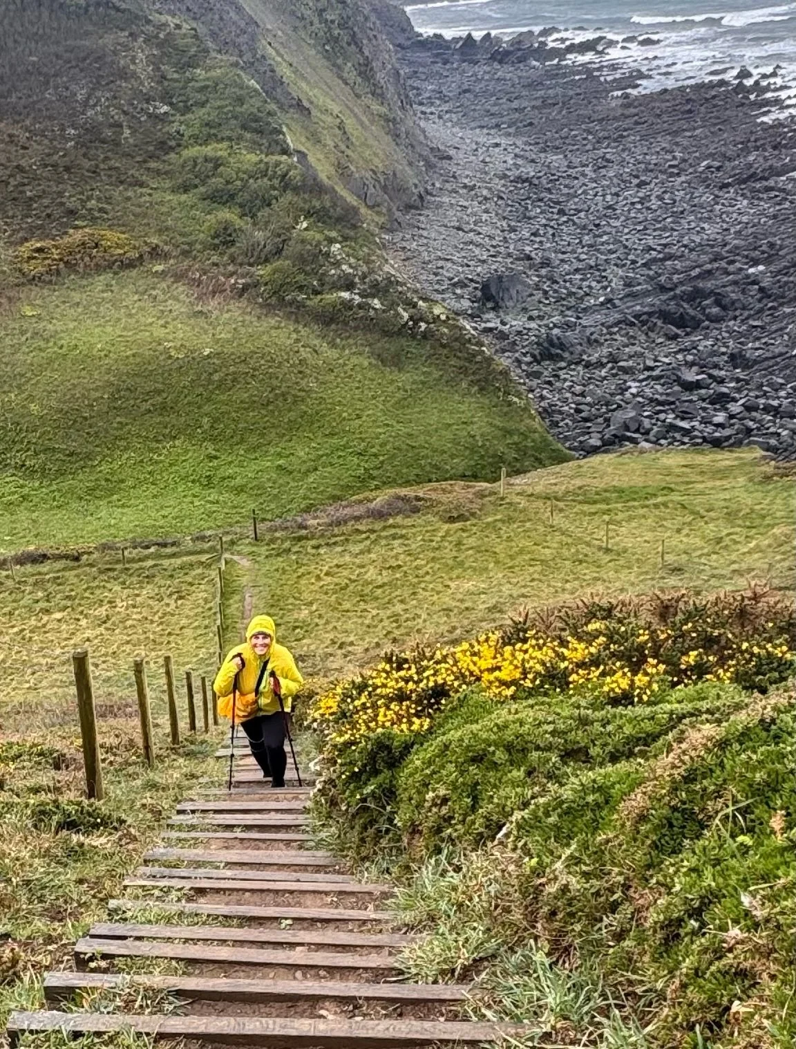 We had made sandwiches, had some grapes and apples, and ate while we walked because we really didn’t want to stand around too long in the inclement weather. I was more tired today than I have been, and lifting each leg up the steep slopes felt like a 50lb weight. I think it was my lingering mild cold, but I feel great now so perhaps the fresh wind and climbs really knocked it out for good.
