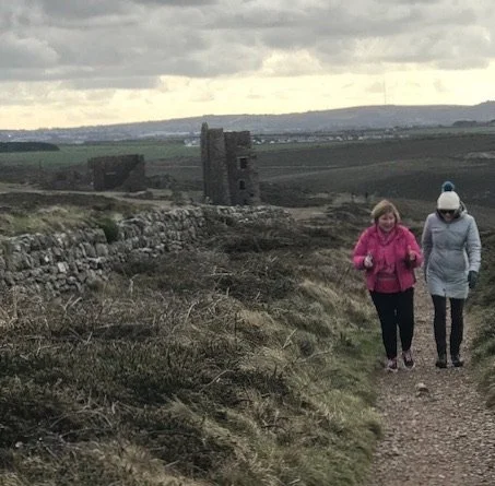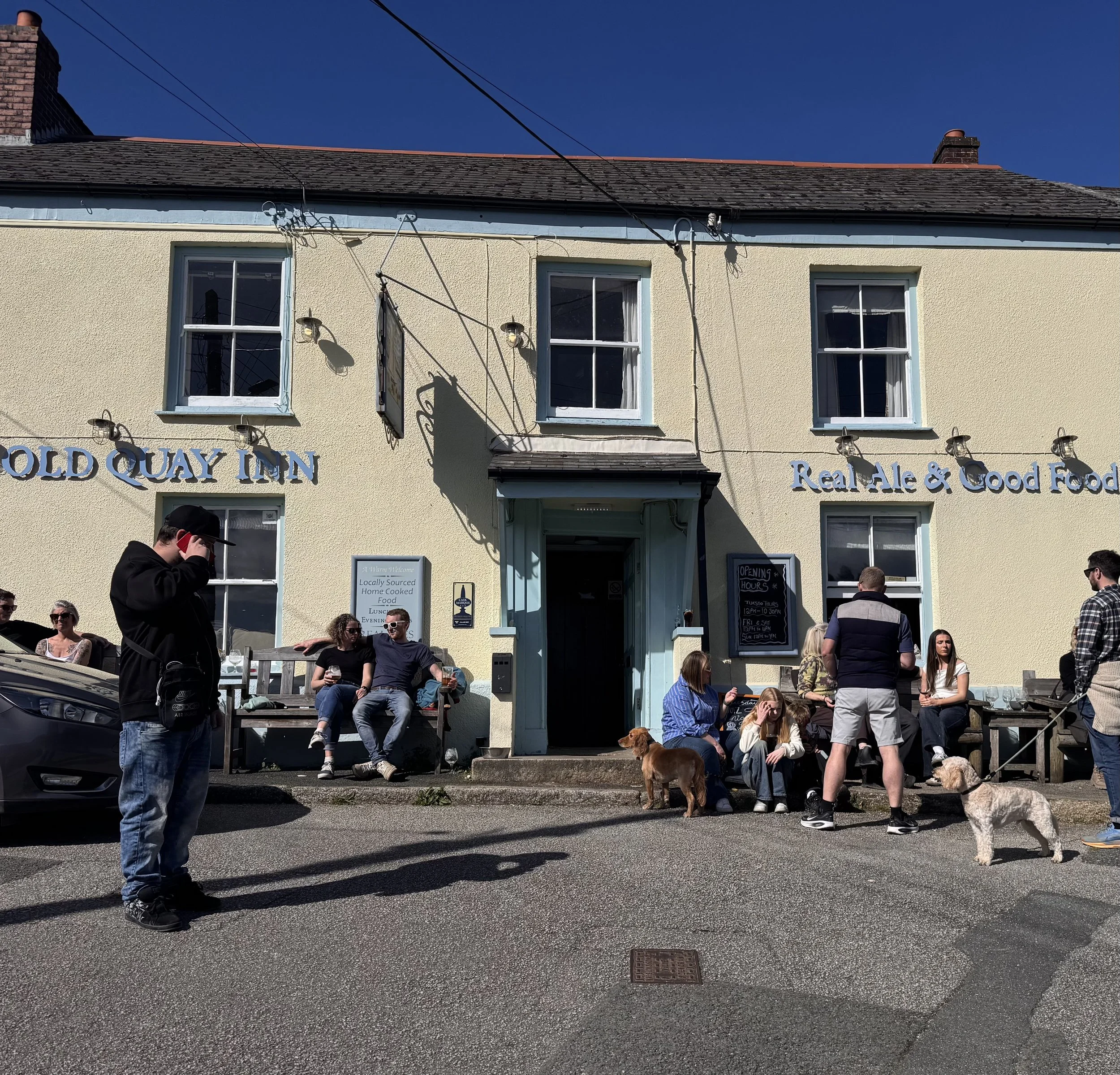 The sun came out, the wind died down here away from the coast, and Suzanne was the consummate tour guide explaining the tin mining history of the area, and showing us the quay (tide was way out and all the boats just tilted on their sides waiting the water to rescue them). Devoran is on the Restronguet Creek, a tributary of the River Fal, flowing into the English Channel - there is a lot of water here and the maritime history is long. We saw so many flowers and green hillsides people walking and enjoying a drink outside the local pub, signs protecting hedgehogs, and ruined mine buildings.