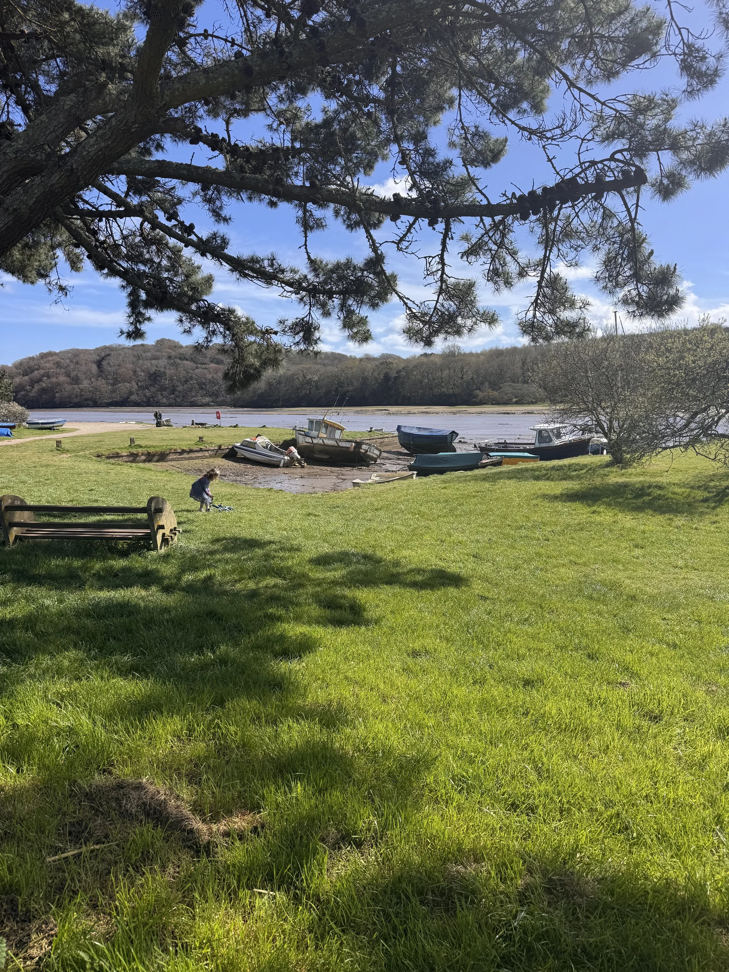 Fortunately, we were planning on staying with Suzanne and her husband Richard. They were going to pick us up in Holywell and drop us back there after staying for the night in there beautiful home in the village of Devoran, just outside Truro (the main city and cathedral town of Cornwall. It’s lovely, visit if you’re ever down in the South West of England). Richard was so sweet and drove to pick us up where we had glamped (saved by a decision to stay in a cute little camping pod instead of pitching a tent last night because the 40mph winds blew all night!), and brought us home where Suzanne had lunch ready. After a yummy lunch of salad, ham, cheese, a Brittany fish spread, and Branston pickle, we took a stroll around the village. We needed to keep our legs moving a little bit to not seize up after the long previous days, and I just took ibuprofen, iced my leg and moved slowly.